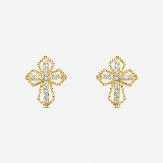 Brinco Cruz Cravejado Quatro Pontos Folheado a Ouro 18K adiciona um charme discreto e uma dose de estilo a cada look. Seja para o dia a dia ou para eventos...