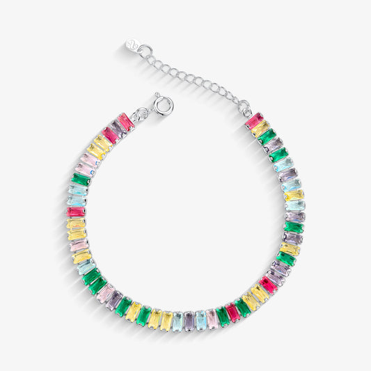 A Pulseira Navetes Colorida Folheado a Prata, é a escolha perfeita para quem busca alegria e sofisticação em um só acessório. Com pedras multicoloridas que refletem o frescor e a...