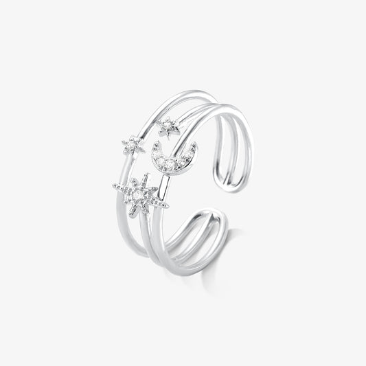 O Anel Regulável Constelação com Lua Cravejado, é a escolha ideal para quem deseja incorporar o encanto do universo em seu visual. Com um design triplo, a peça combina estrelas...