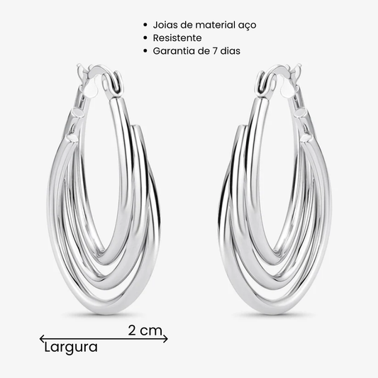 O Brinco Aço Argola Quadrada Tripla é uma peça moderna e sofisticada, marcada por seu design geométrico de argolas quadradas em composição tripla, que confere um visual contemporâneo e elegante....
