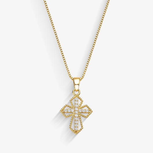Descubra o Colar Dourado Cruz Cravejada Duplo, ideal para quem busca estilo e personalidade. A cruz deste colar moderno e único é adornada com pedras brilhantes que capturam a luz...
