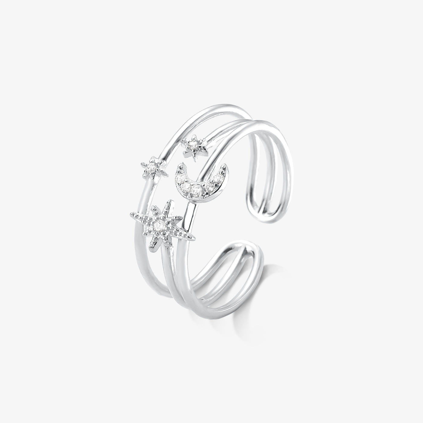 Adicione o Anel Regulável Constelação com Lua Cravejado ao seu carrinho e leve para o seu visual um toque do universo.