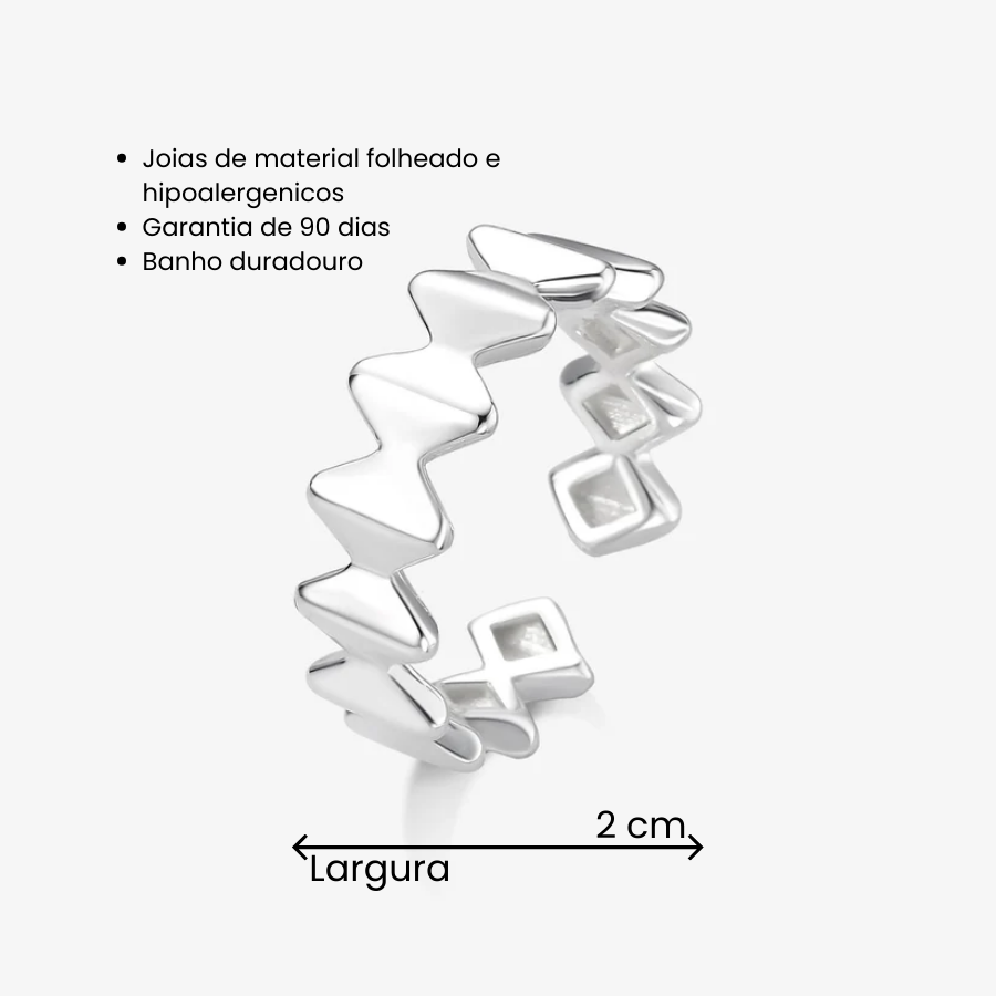 O Anel Regulável Coroa, é a escolha perfeita para quem busca um acessório moderno, cheio de personalidade e com um toque ousado. Seu design inovador, que lembra uma coroa estilizada, combina formas geométricas com acabamento polido, resultando em uma peça marcante e super atual. Com ajuste regulável, é confortável e versátil para qualquer ocasião.