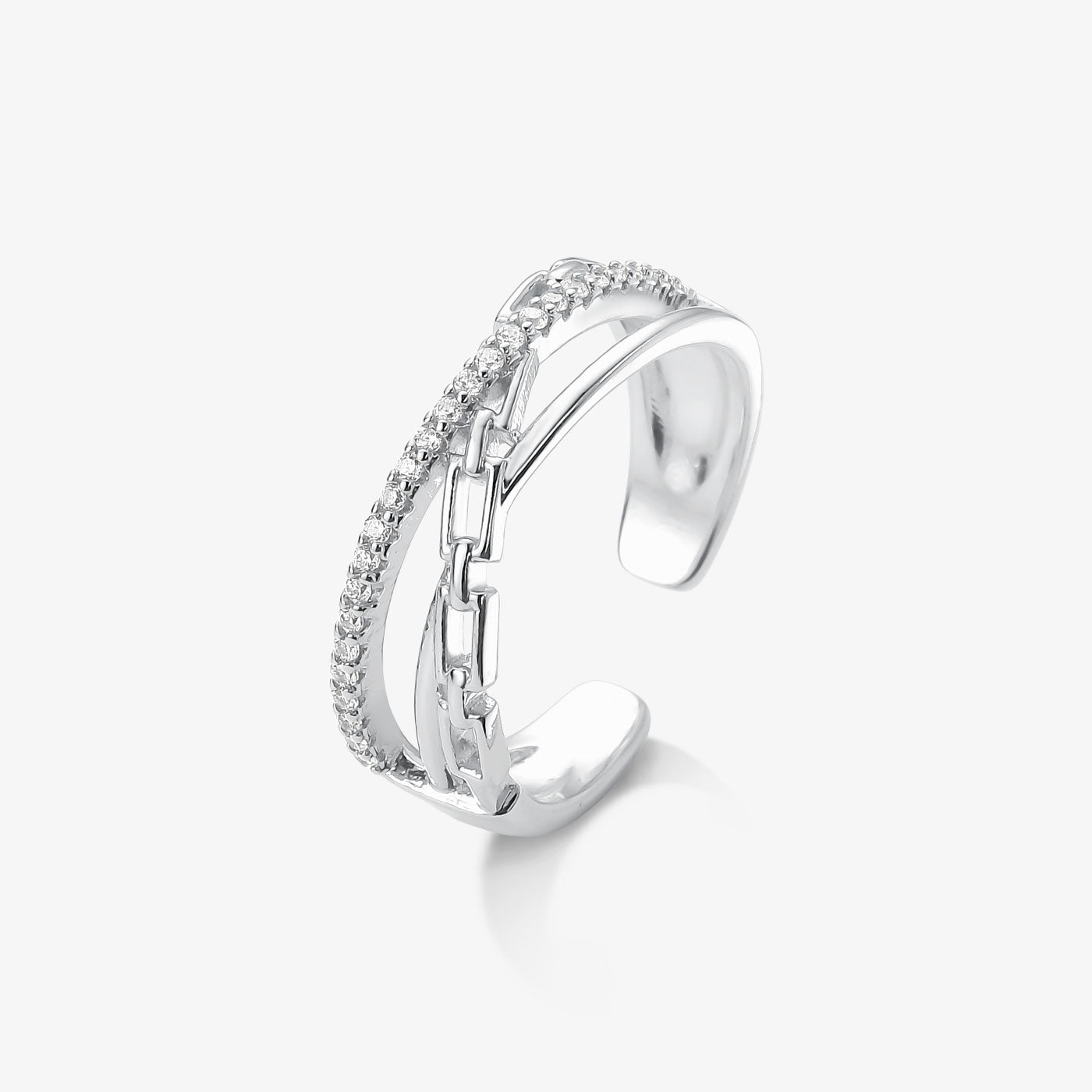 Adicione o Anel Regulável Triplo Corrente Cravejada ao seu carrinho e adicione um toque único e moderno ao seu visual. Estoque limitado! Não perca a chance de brilhar com este anel cheio de estilo e versatilidade.