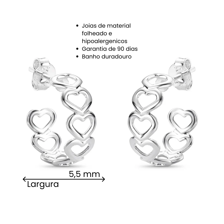 O Argola Borda Coração Vazado Folheado a Prata, é a escolha ideal para quem busca elegância atemporal. Combinando conforto e versatilidade, é perfeito para usar no dia a dia ou em ocasiões especiais.