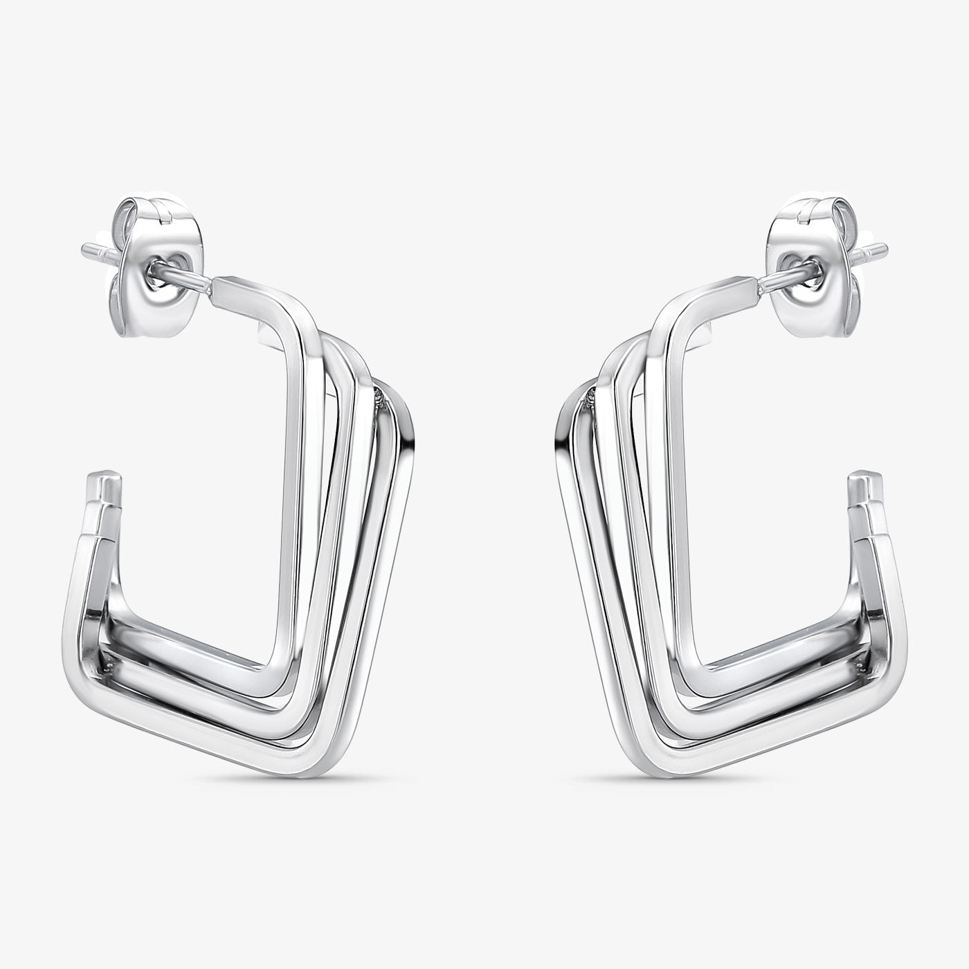 O Brinco Aço Argola Quadrada Tripla é uma peça moderna e sofisticada, marcada por seu design geométrico de argolas quadradas em composição tripla, que confere um visual contemporâneo e elegante. Com acabamento refinado, ele valoriza o rosto e adiciona personalidade ao look com um toque urbano e atual.