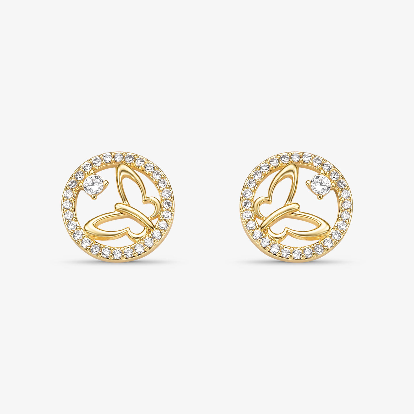 Brinco Borboleta Borda Redonda Cravejado Folheado a Ouro 18k – Delicadeza e Brilho