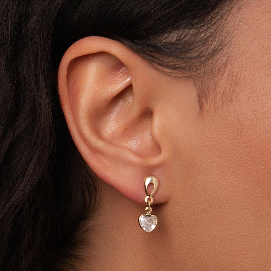 Com um design em formato de coração que incorpora um cristal cintilante, este brinco traz um toque de luz e modernidade ao seu visual, perfeito para quem deseja um look cheio de personalidade. Folheado a ouro 18K, ele oferece um acabamento impecável e durabilidade, garantindo conforto e brilho para o uso diário.