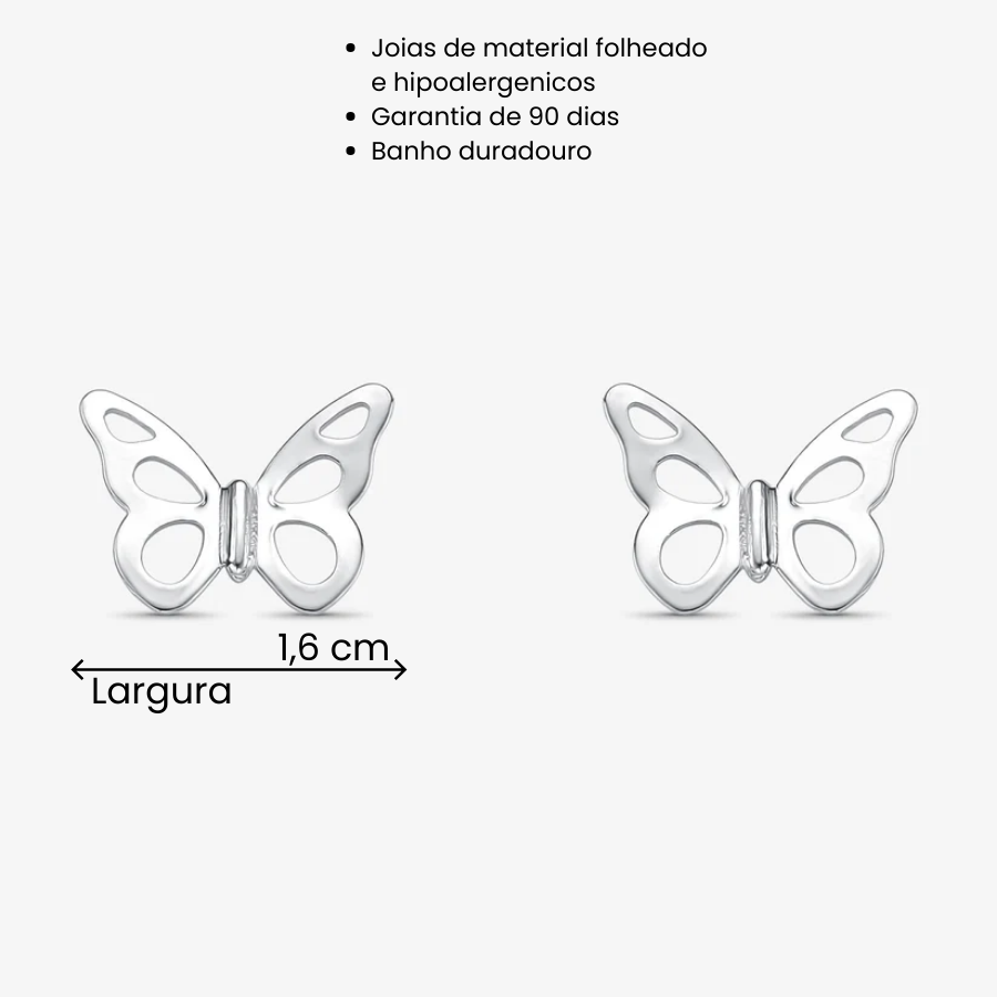 Seu design em formato de borboleta lisa e vazada traz um toque singular e atual ao seu visual, valorizando qualquer produção de maneira delicada e especial. Produzido com materiais de alta qualidade, este brinco oferece resistência e durabilidade, ideal para diversas ocasiões.