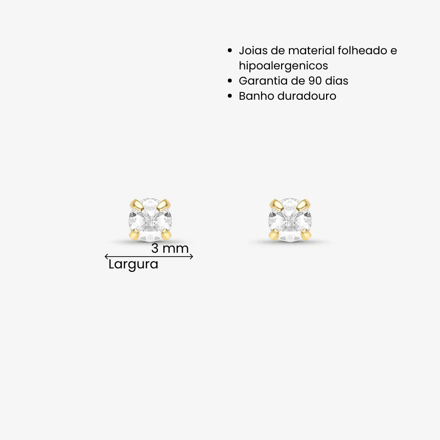 Este Brinco Dourado Zircônia Redonda 3mm é a definição perfeita de estilo e versatilidade. Com sua zircônia, ele adiciona um toque de brilho a qualquer look. Se você quer um acessório que realce sua beleza de forma delicada, este brinco é a escolha ideal.