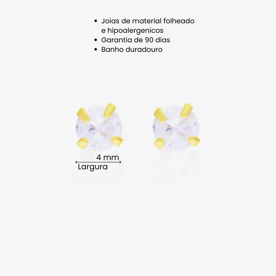 O Brinco Dourado Zircônia Redondo 4mm é a definição perfeita de estilo e versatilidade. Com sua zircônia Redondo 4mm, ele adiciona um toque de brilho discreto e refinado a qualquer look. Se você quer um acessório que realce sua beleza de forma discreta e elegante, este brinco é a escolha ideal.