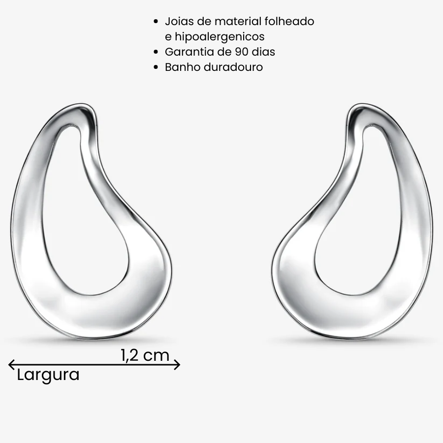 Este brinco apresenta um design elegante em formato de gota com um detalhe vazado, proporcionando um visual único e atraente. O acabamento folheado à prata adiciona um brilho sutil e versátil, tornando-o perfeito para complementar diversos looks com um toque de originalidade e leveza.