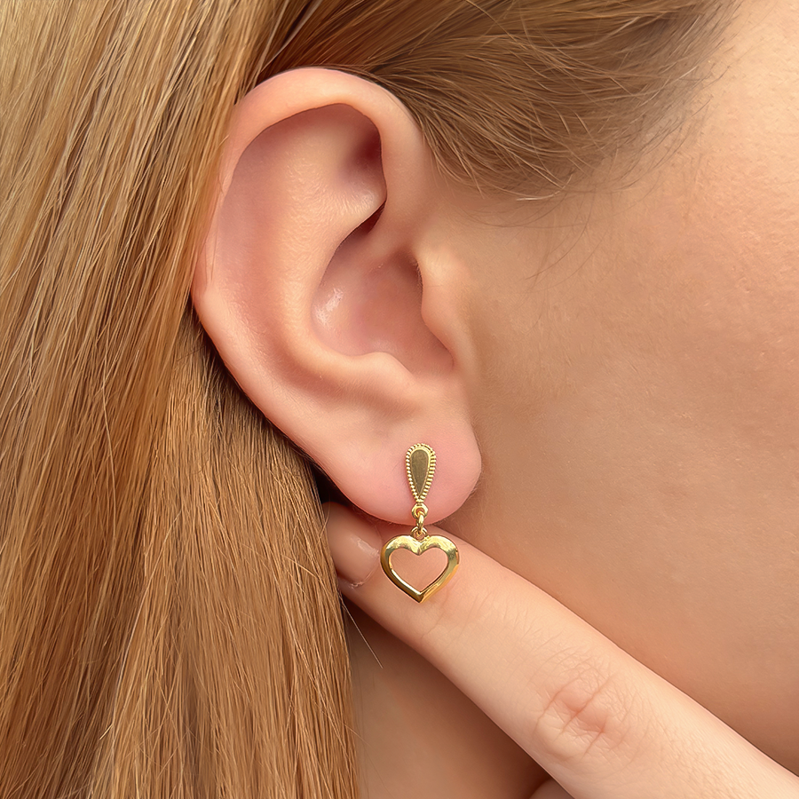 Delicado e cheio de personalidade, esse brinco combina o formato de gota com um coração vazado que traz leveza e romantismo à peça. O acabamento folheado a ouro 18k adiciona brilho e sofisticação, tornando-o perfeito para quem busca um acessório elegante para o dia a dia ou para dar um toque especial em produções mais elaboradas. Uma joia versátil, moderna e pronta para destacar sua beleza em qualquer ocasião.