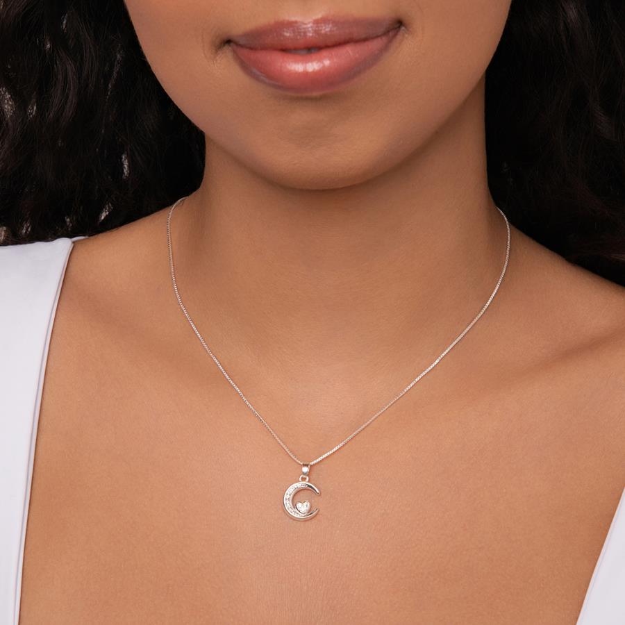 O pingente em formato de meia lua, adornado com zircônias e um coração em seu centro, oferece um visual que celebra a magia do céu e a profundidade dos sentimentos. Uma peça única que combina mistério e afeto.