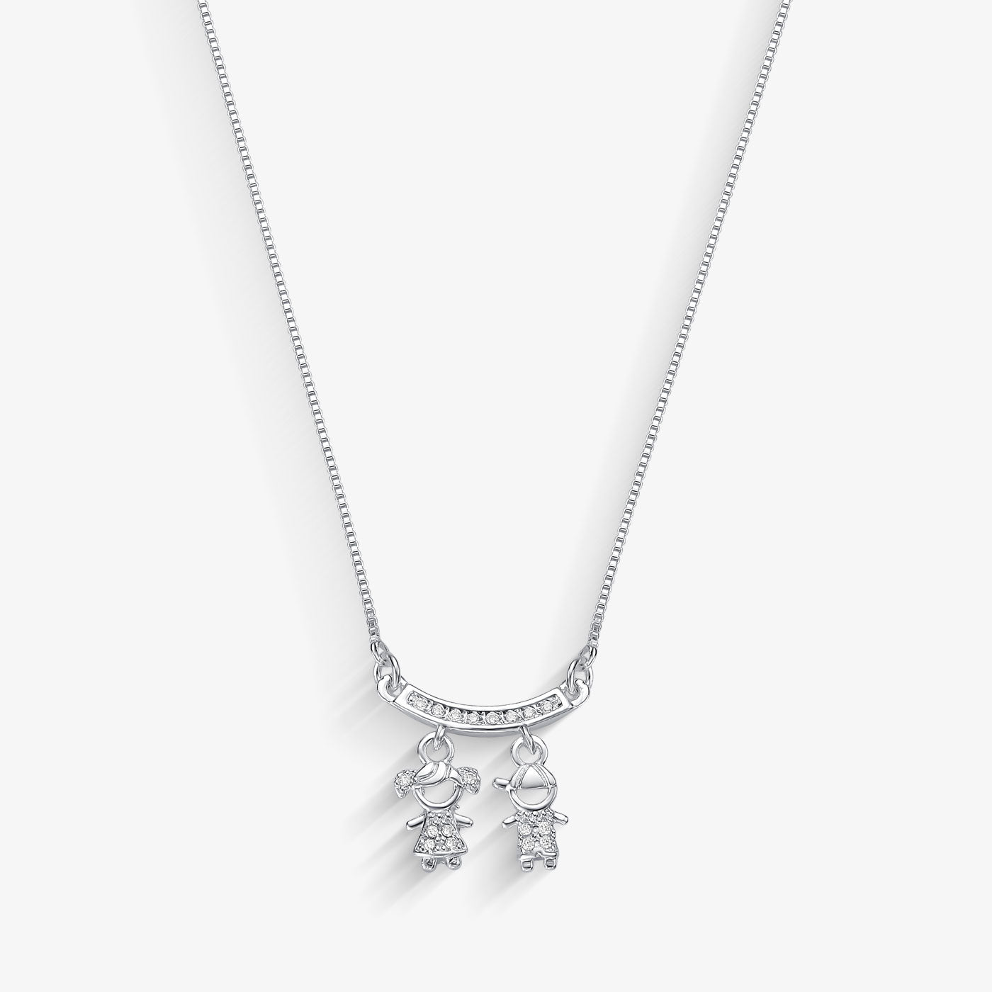 Descubra o Colar Prata Menino e Menina com Base Cravejada, ideal para as mães que querem homenagear sua maternidade com estilo, personalidade e significado.