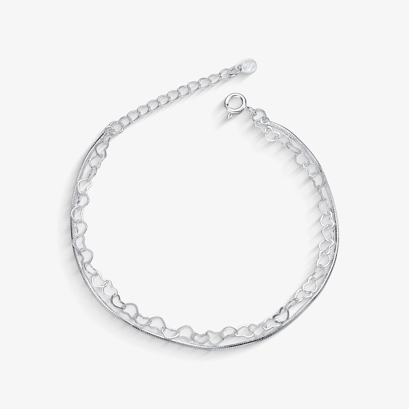 Feita com materiais de alta qualidade, a pulseira é folheada a prata, garantindo durabilidade e um brilho irresistível. Seus corações são meticulosamente trabalhados, proporcionando um visual delicado, mas ao mesmo tempo marcante. Além disso, seu fechamento seguro oferece conforto e praticidade para o uso diário.